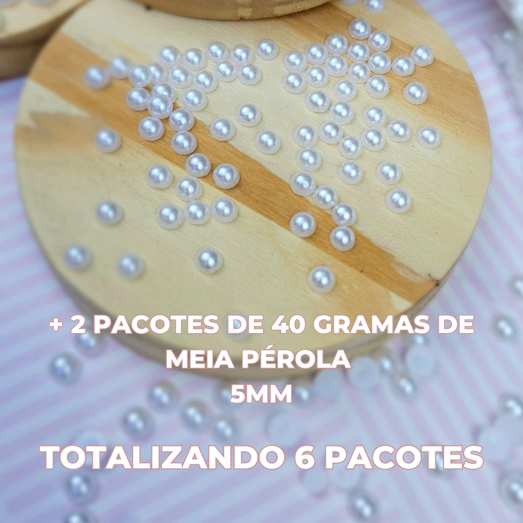 Nesse produto ira; meia pérola ABS - cor BRANCA - tamanho 5 mm , 6 mm e 8 mm - PACOTE DE 40G - (SENDO 2 PACOTES COM TAMANHO 8 MM + 2 PACOTES COM TAMANHO 6 MM + 2 PACOTES COM 5 MM ).